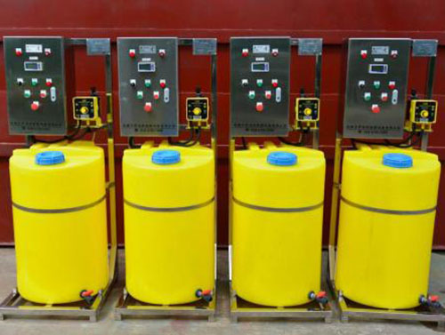循環水加藥裝置工藝原理:工業循環冷卻系統在自然運行時會因循環水的硬度、堿度、PH值、濃縮倍數、氣溫、環境濕度等因素的綜合影響產生結垢或腐蝕傾向,兩者對循環冷卻系統的安全和運行效率都會生產不良影響。為了抑制結垢或者腐蝕發生,就需向水中人工投加緩蝕劑或阻垢劑。常用的緩蝕劑和阻垢劑包括聚磷酸鹽、鋅鹽、聚羧酸鹽和磷酸鹽等等。