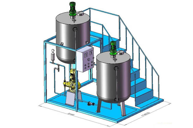 本裝置主要包括藥液溶配系統(tǒng)、計(jì)量投加系統(tǒng)、安全系統(tǒng)和控制系統(tǒng)等四部分。
