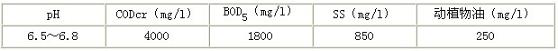 生產工藝中產生的廢水水質為: