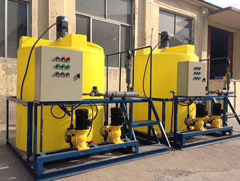 加藥裝置根據所需藥劑濃度,在攪拌箱內配置,經攪拌器攪拌均勻后投入溶液箱、用計量泵向投藥點或指定系統中輸送所配制的溶液。成套加藥裝置具有結構緊湊、安全簡單、操作使用簡便等特點。加藥裝置還可根據用戶不同工藝流程的要求,進行有針對性的設計、配置必要的部件,實現自動遠程控制等功能。