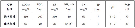 某工業園區主導產業為電力、新材料、冶金、機械、紡織工業等,該園區污水處理廠設計總規模1 萬m3 /d,一期規模0.5 萬m3 /d,遠期Kz = 1.58,近期Kz = 1.74。污水處理廠進水標準參考《污水排入城鎮下水道水質標準》GJ343-2010,出水標準執行GB18918-2002 中一級B 標準,詳見下表。