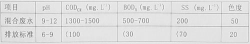 廢水中主要污染物的濃度列表1