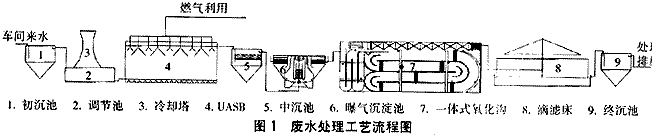 | 處理單元 | 原水 | 初沉池 | UASB反應器 | 曝氣沉淀池 | 一體化氧化溝 | 滴濾床 |