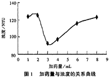 絮凝劑配成1g/L的溶液。燒杯攪拌實驗在磁力攪拌器上進行,每次實驗水樣為200mL,水樣取自某星級賓館的餐飲廢水,經初沉后用0.1mol/L稀鹽酸和0.1mol/L氫氧化鈉精確調pH值到要求值。操作程序為:在快速攪拌下投加絮凝劑反應2min后,改變攪拌速度為慢速,繼續攪拌10min,靜沉20min后,距上液面約5cm處吸取部分上清液測定剩余濁度及CODcr[2]。