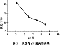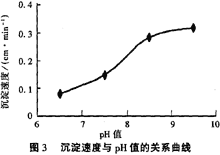 從圖2中可以看出,隨著pH值的增大,上清液濁度減小,比較佳pH值為9左右。而且從圖3可以看出pH值增大時,沉淀速度加大。